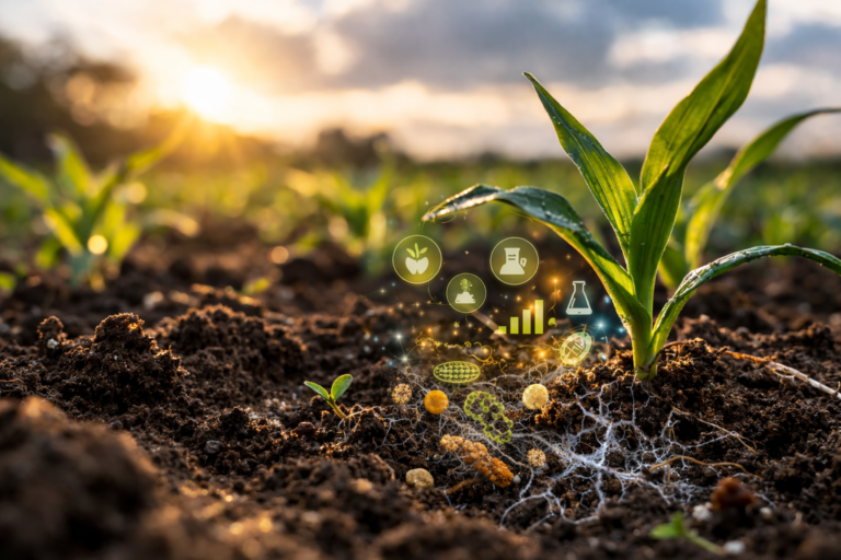 Uma análise do microbioma transforma a agricultura, otimizando o solo e bioinsumos com tecnologia genômica para um manejo mais sustentável e eficiente.